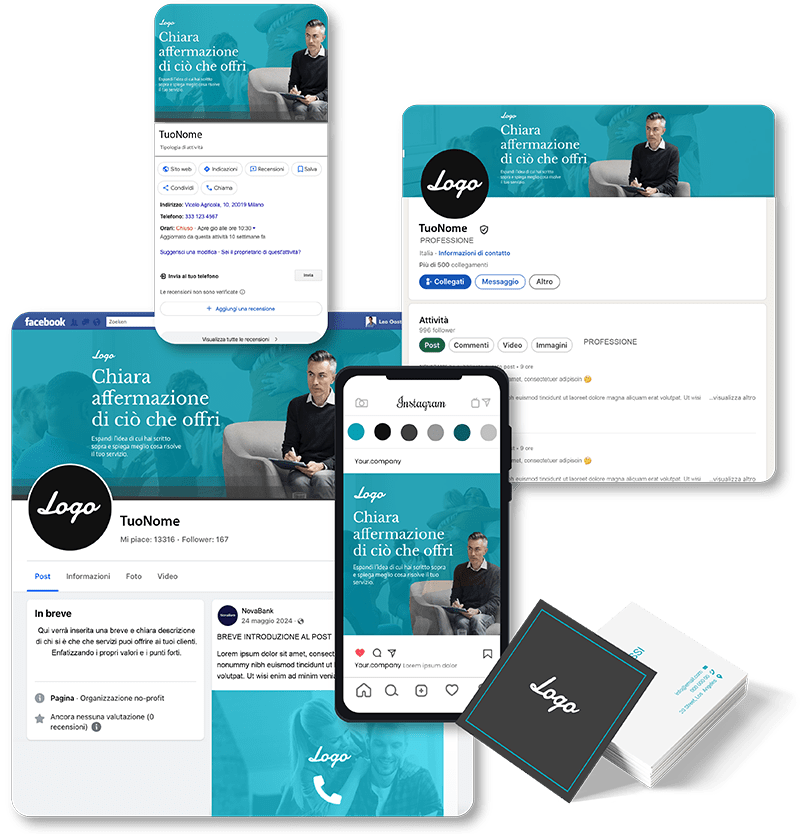 Il risultato è un’identità professionale chiara e riconoscibile in tutto il web. I potenziali utenti ti trovano nel canale che preferiscono e percepiscono coerenza e affidabilità, rafforzando la fiducia nella tua attività.