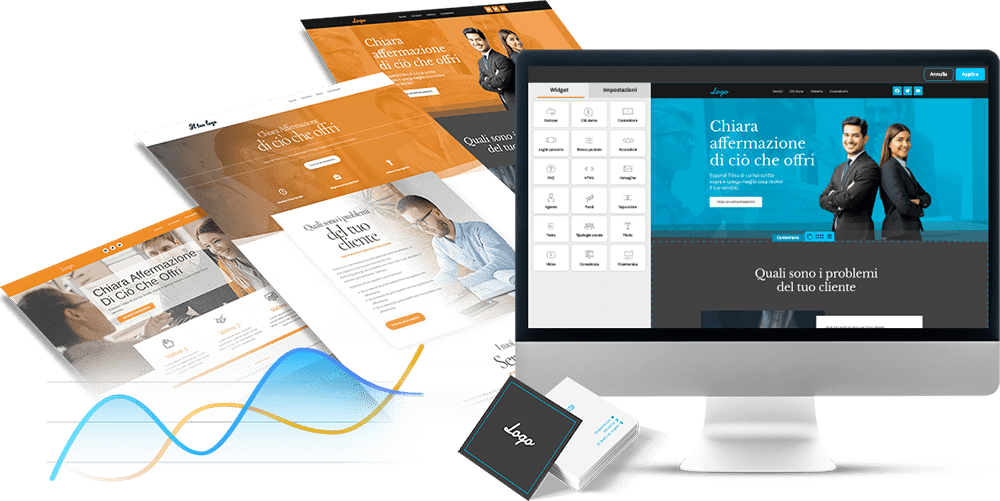 Ti mettiamo a disposizione 3 modelli grafici ottimizzati, progettati per includere tutte le informazioni che un potenziale utente si aspetta di trovare in un sito (chi sei, cosa offri, come contattarti). Il modello scelto viene poi personalizzato nei colori, nelle immagini e nei testi, per renderlo coerente con la tua identità.